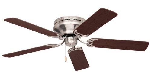 153x10mm motor. Brushed Steel housing finish. Set of 5 Reversible Dark Cherry / Mahogany Blades. 42 in. Blade span. 11 Blade pitch. Flush Mount. Pull chain included. Light Kit adaptable. 52 Watts / .45 Amps. 60-200 RMP Range. Indoor use only Great for small bedrooms and kitchens! Choose the 42" size for those smaller areas with limited clearance.