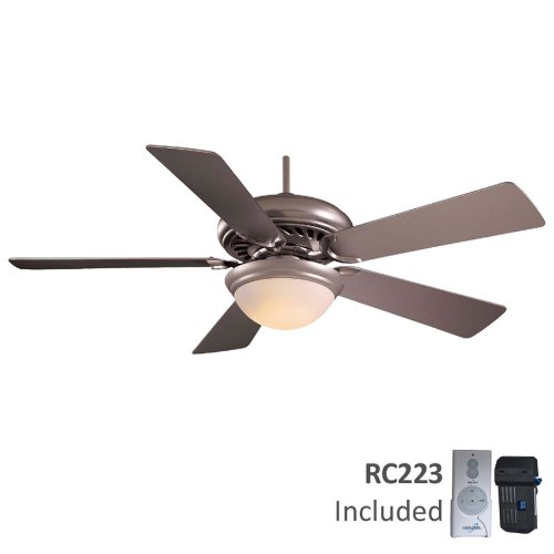 Made with an attractive fusion of classic style and modern design, the Minka Aire F569-BS Supra 52 in. Indoor Ceiling Fan in Brushed Steel is the perfect way to add a welcome update to any room. This fan and light combination features a brushed steel finish and 5-blade design pushed by a powerful yet quiet motor. Keep your setting illuminated with the help of a single 100-watt halogen bulb (not included) that shines from behind a frosted glass shade. Control fan speed, light, and power from anywhere in the room with the included remote control. About the Minka Group: The Minka Group is a top l